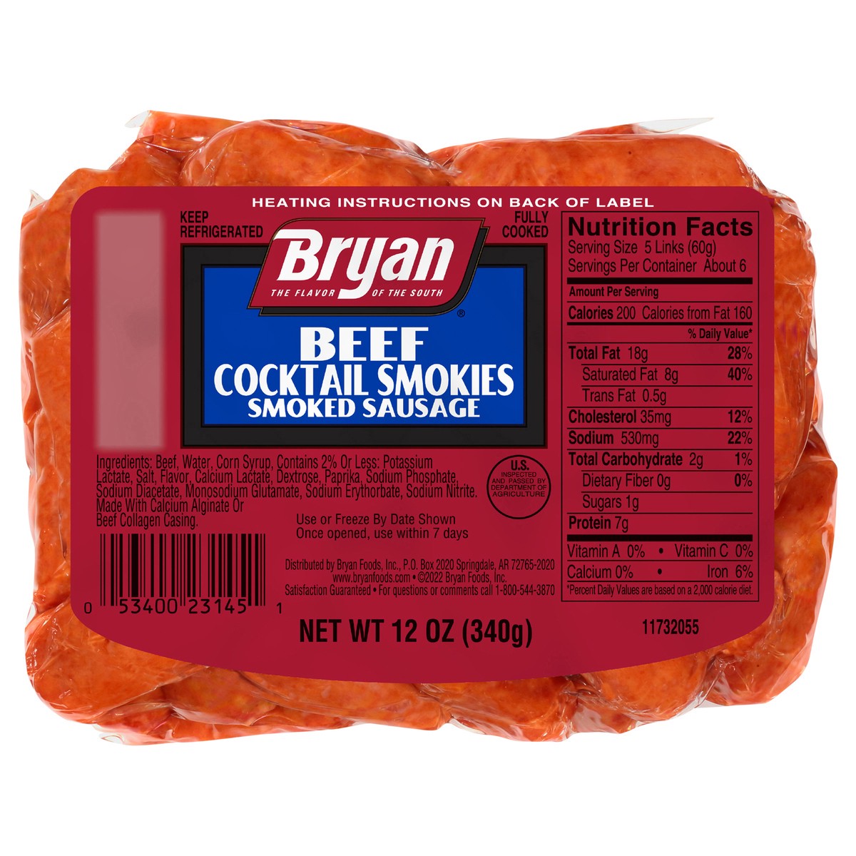 Whether you''re crafting an appetizer for a party or looking for a savory bite to eat, Bryan Beef Cocktail Smokies Smoked Sausages are the perfect snack. Fully cooked, our smokies are ready to heat an…