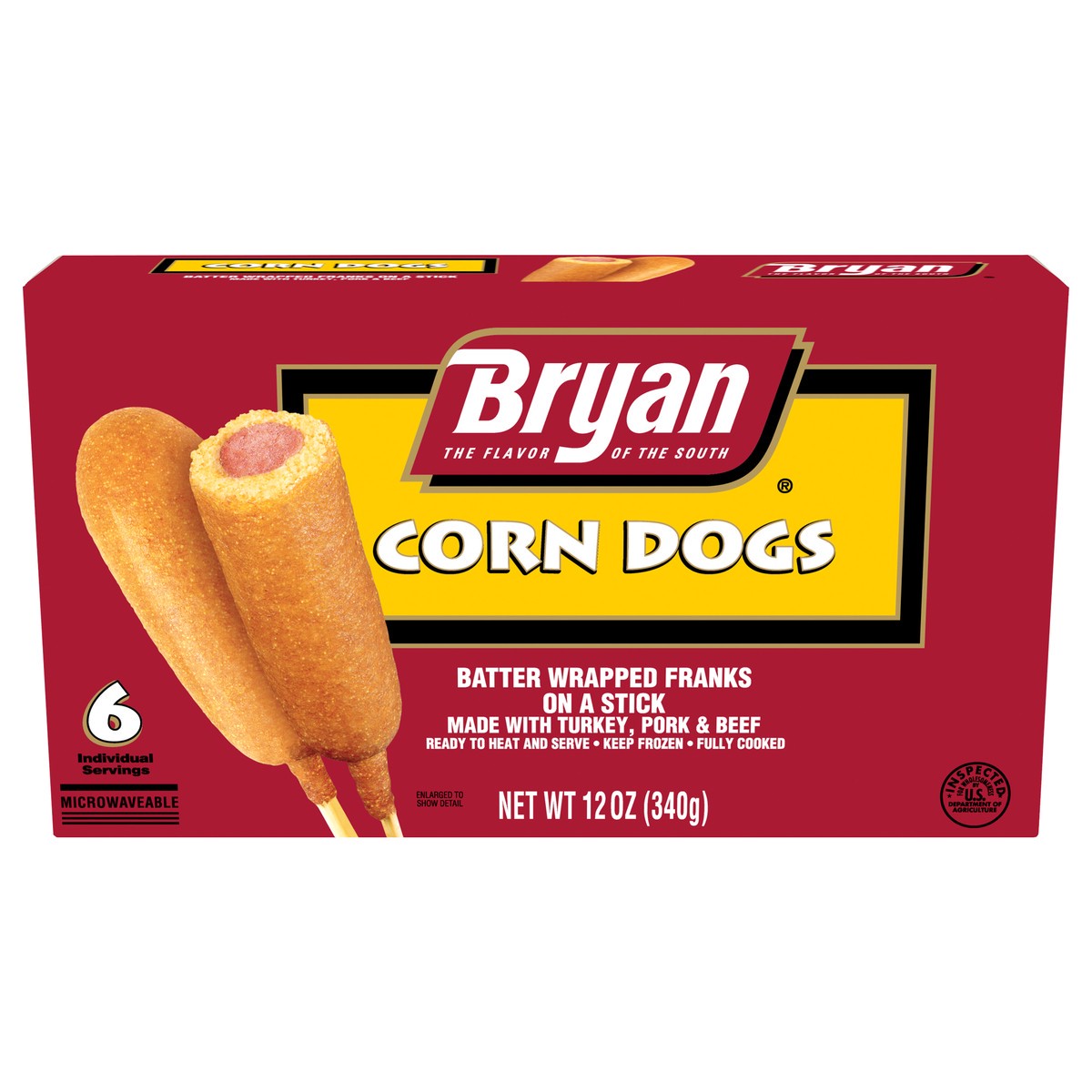 Bring the comfort and flavor of Bryan Frozen Beef Corn Dogs home for the whole family to enjoy. Made with USDA approved beef, turkey and pork, our batter-wrapped franks on a stick are delicious and re…