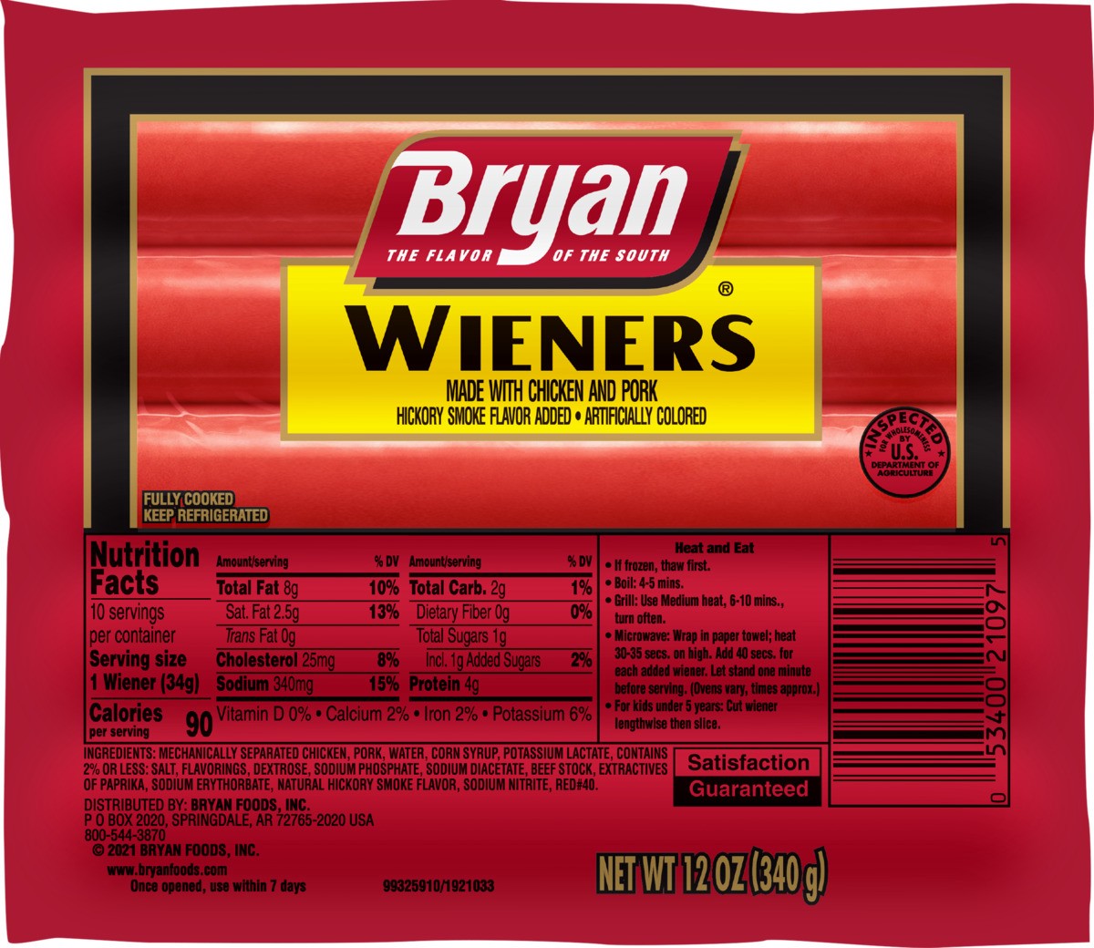 Get your backyard barbecue started with Bryan Hickory Smoke Wieners. Our chicken and pork wieners are packed with a savory\, hickory smoked taste that is perfect for cookouts and company. Fully cooked…