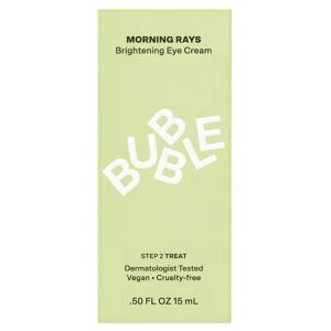 Bubble's Morning Rays Brightening Eye Cream makes sleepy eyes POP! This lightweight eye cream brightens, de-puffs, and reduces the appearance of dark circles for absolutely eye-popping results. You ma…