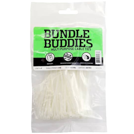 Shop for the Bundle Buddies Natural Multi Purpose Cable Ties at Michaels. These locking cable ties by Bundle Buddies are perfect for securing loose wires and cords.. 4" (10.2 cm) each . 100 cable ties…