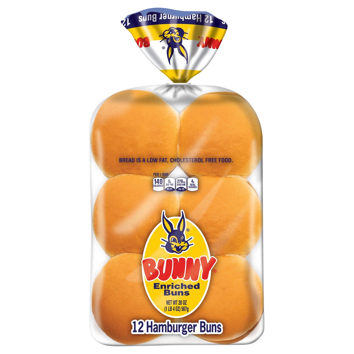 Bunny Bread Sliced White Bread Hamburger Buns are tasty, classic buns perfect for juicy hamburgers, pulled pork and all your sandwich needs. Each soft, fluffy white bread bun is a cholesterol-free foo…