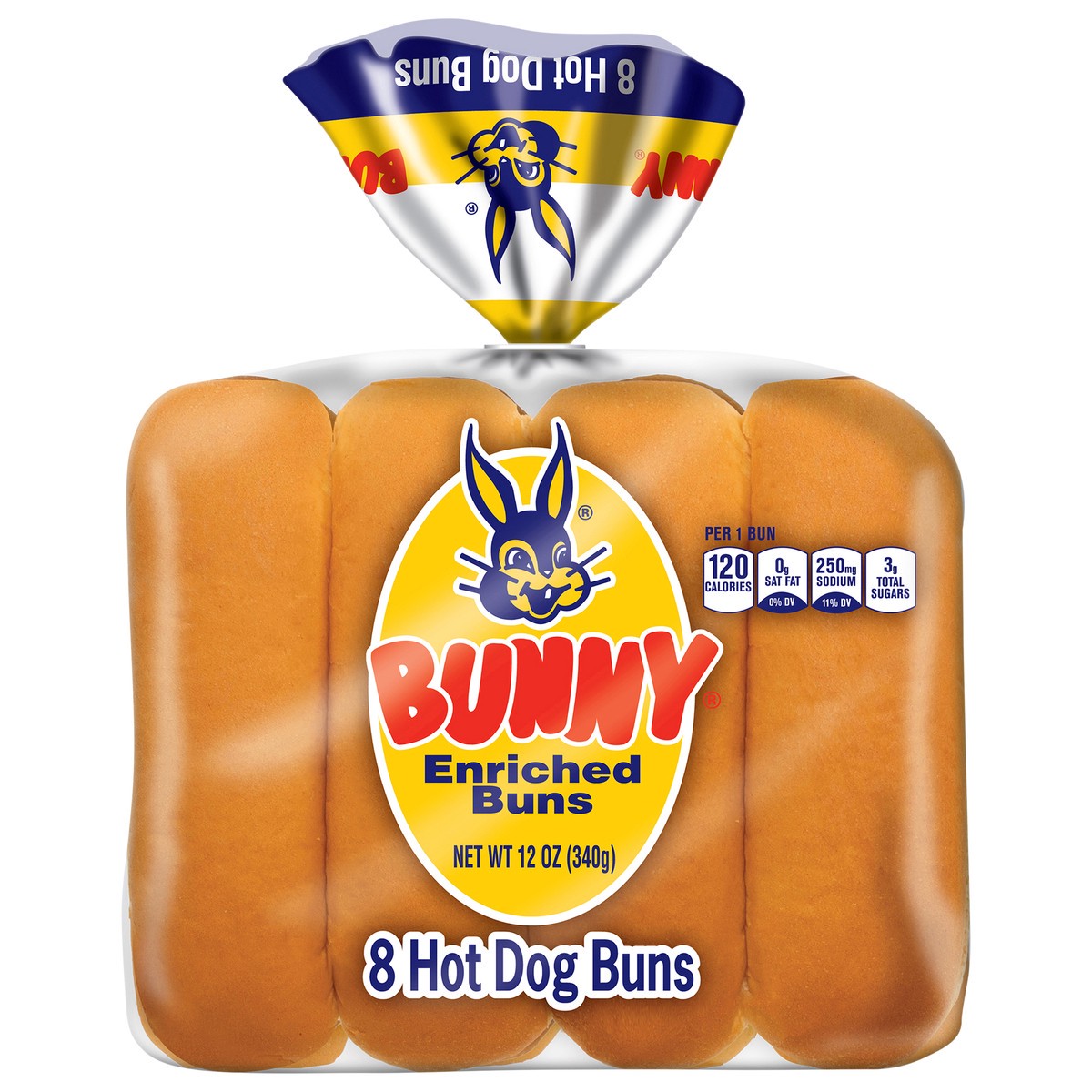 Bunny Bread Sliced White Bread Hot Dog Buns are tasty, classic buns perfect for delicious hot dogs, bratwursts, Italian sausages and more. Each soft, fluffy white bread bun is a cholesterol-free food.…