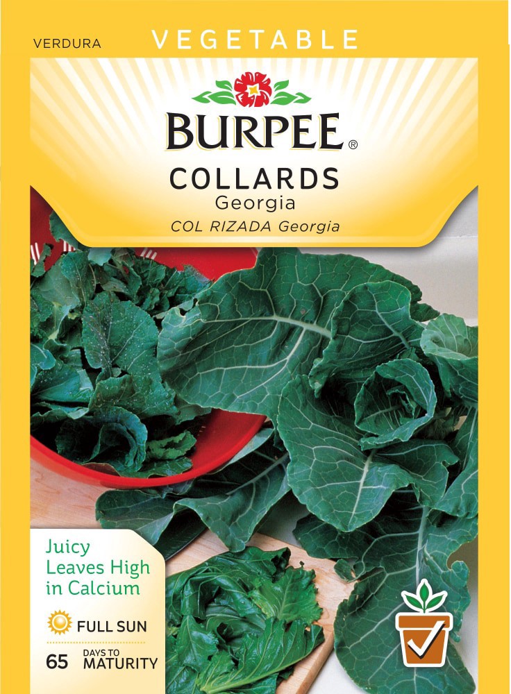 Seeds, Collards, Georgia. Vegetable. Juicy leaves high in calcium. Full sun. 65 days to maturity. Juicy, blue leaves. Will stand freezing, which improves mild cabbage-like flavor. Go to burpee.com/mor…