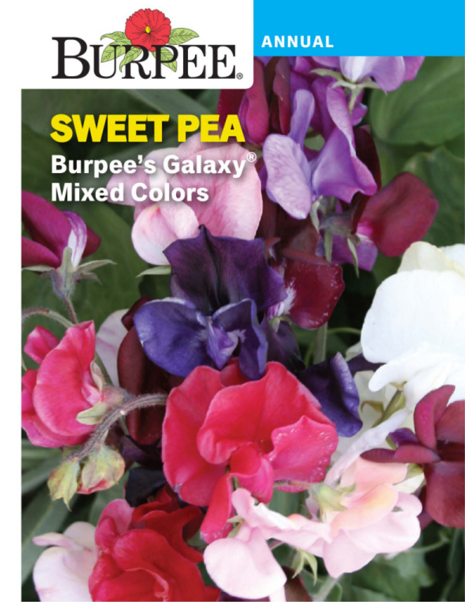 Seed Packet of Burpee Sweet Pea Burpee's Galaxy Mixed Colors