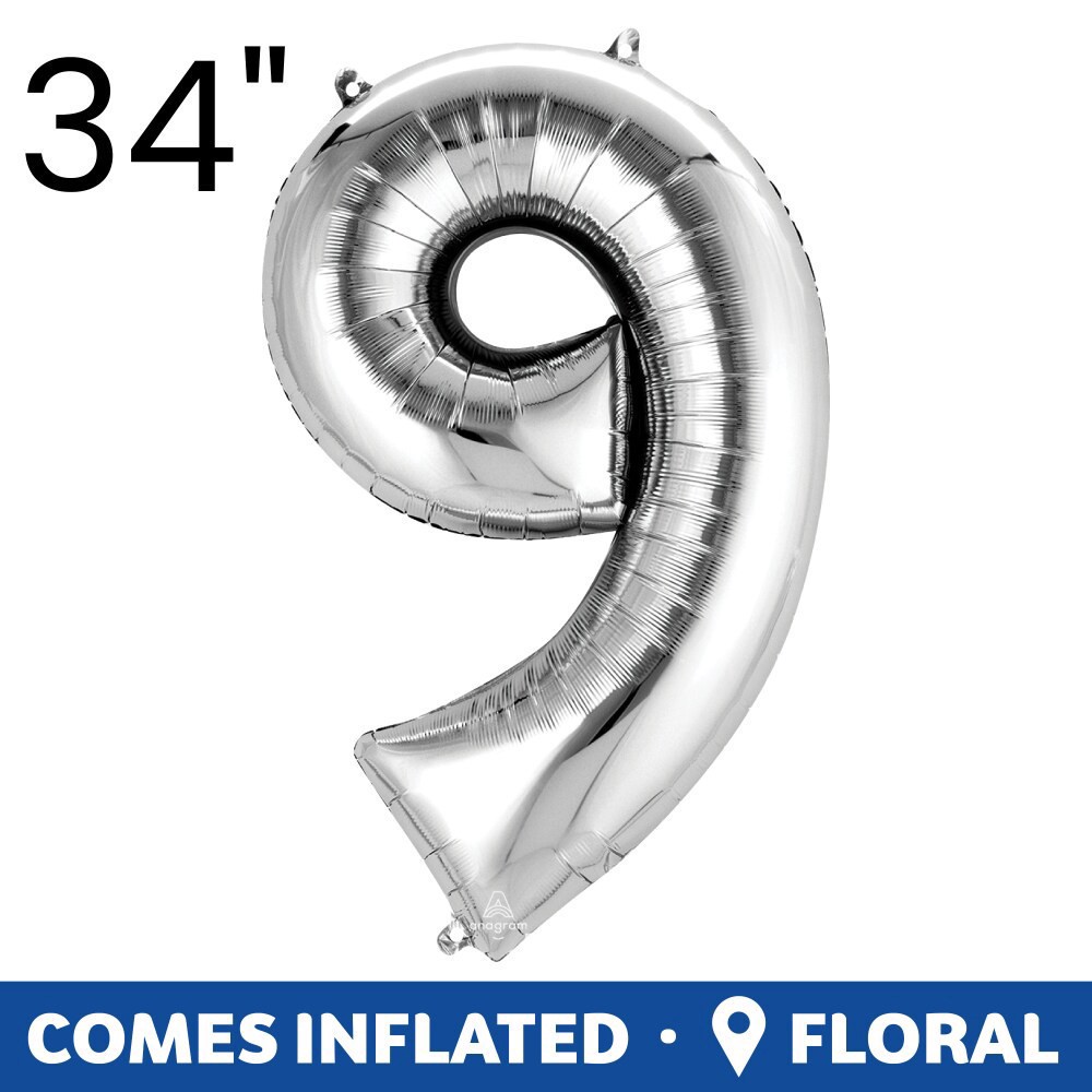 Add some extra sparkle and oomph to your special occasion by featuring an oversized silver number. Each balloon is a silver #9. Helium-filled. Fun decor for birthdays, anniversaries, graduations and m…