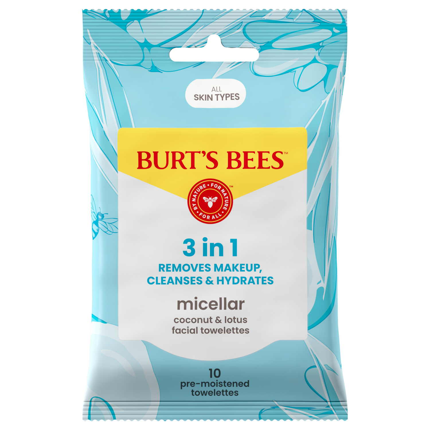 Burt's Bees Micellar Facial Towelettes With Coconut and Lotus are designed for all skin types to help nourish skin and remove dirt, oil and makeup.