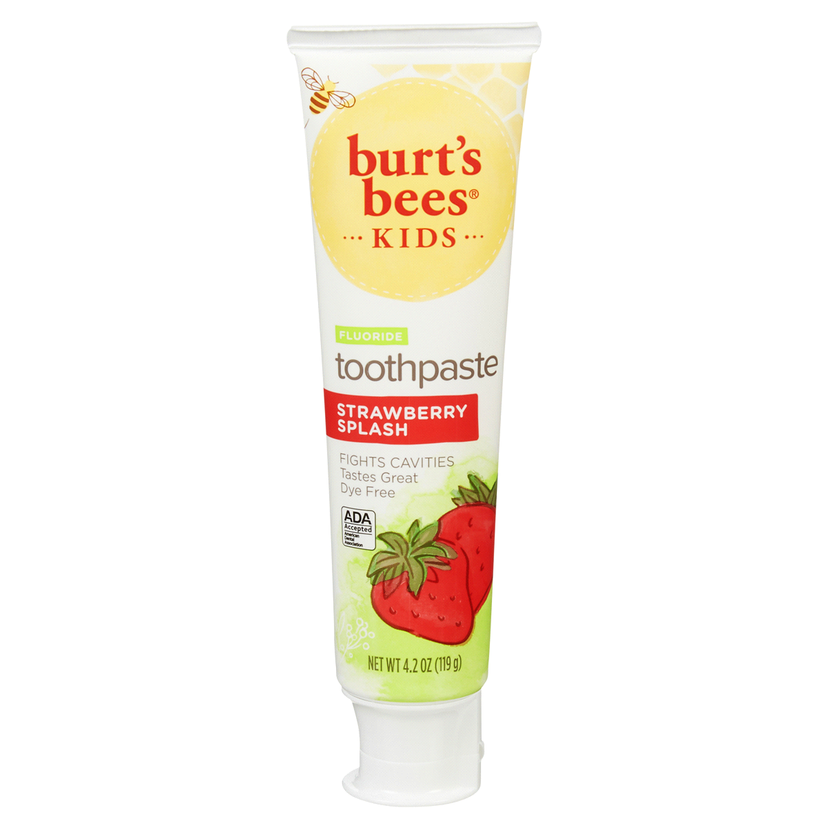 Burt's Bees Strawberry Splash Kids fluoride toothpaste fights cavities. Burt's Bees Toothpastes with Fluoride are ADA accepted. Not tested on animals and made without: Sodium Lauryl Sulfate (SLS free)…