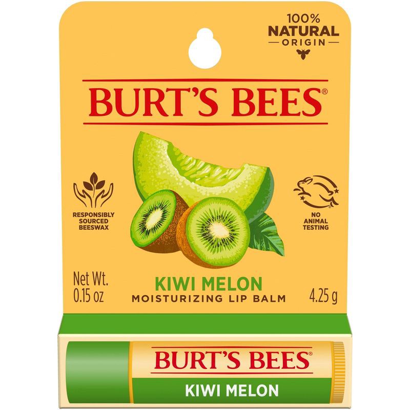 Burt's Bees Kiwi Melon Lip Balm instantly softens and hydrates your lips to help prevent dryness, cracking or chapping. Infused with responsibly sourced beeswax to richly moisturize and soothe lips, t…