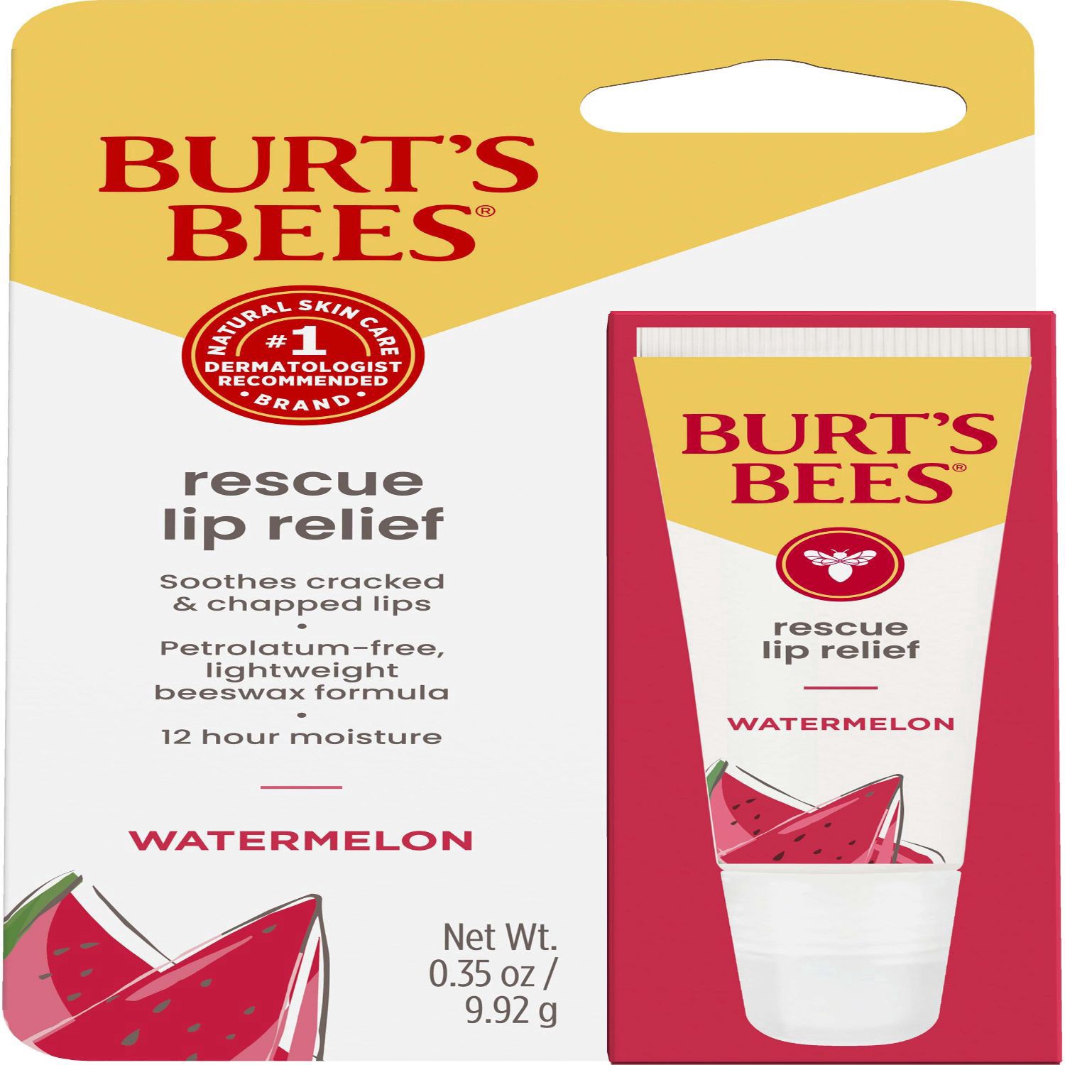 Burt''s Bees Rescue Lip Relief with Watermelon flavor soothes your cracked and chapped lips with an effective and delightful formula. Enjoy the delicious flavor that tastes like a juicy, sweet and ref…