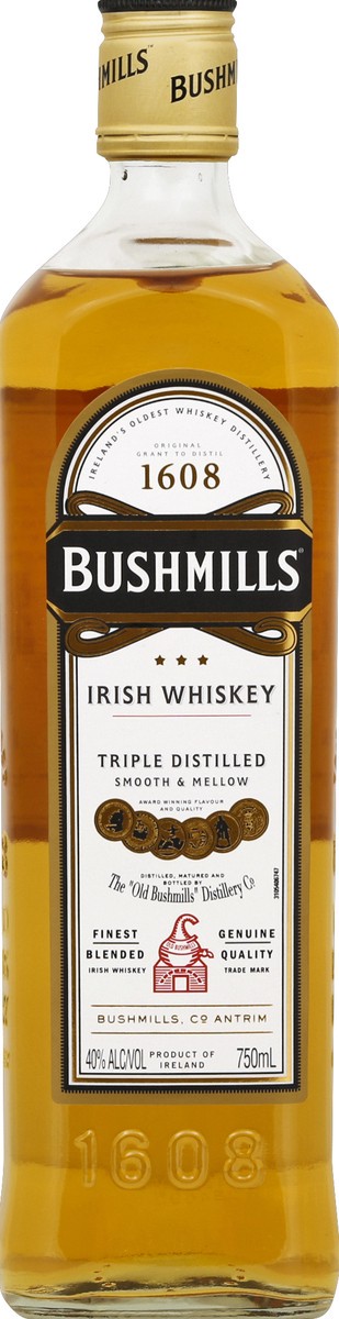 Triple distilled. Smooth & mellow. Award wining flavor and quality. Finest blended Irish whiskey. Genuine quality. Ireland's oldest whiskey distillery. Original 1608. Aged for a minimum of 3 years. Pl…
