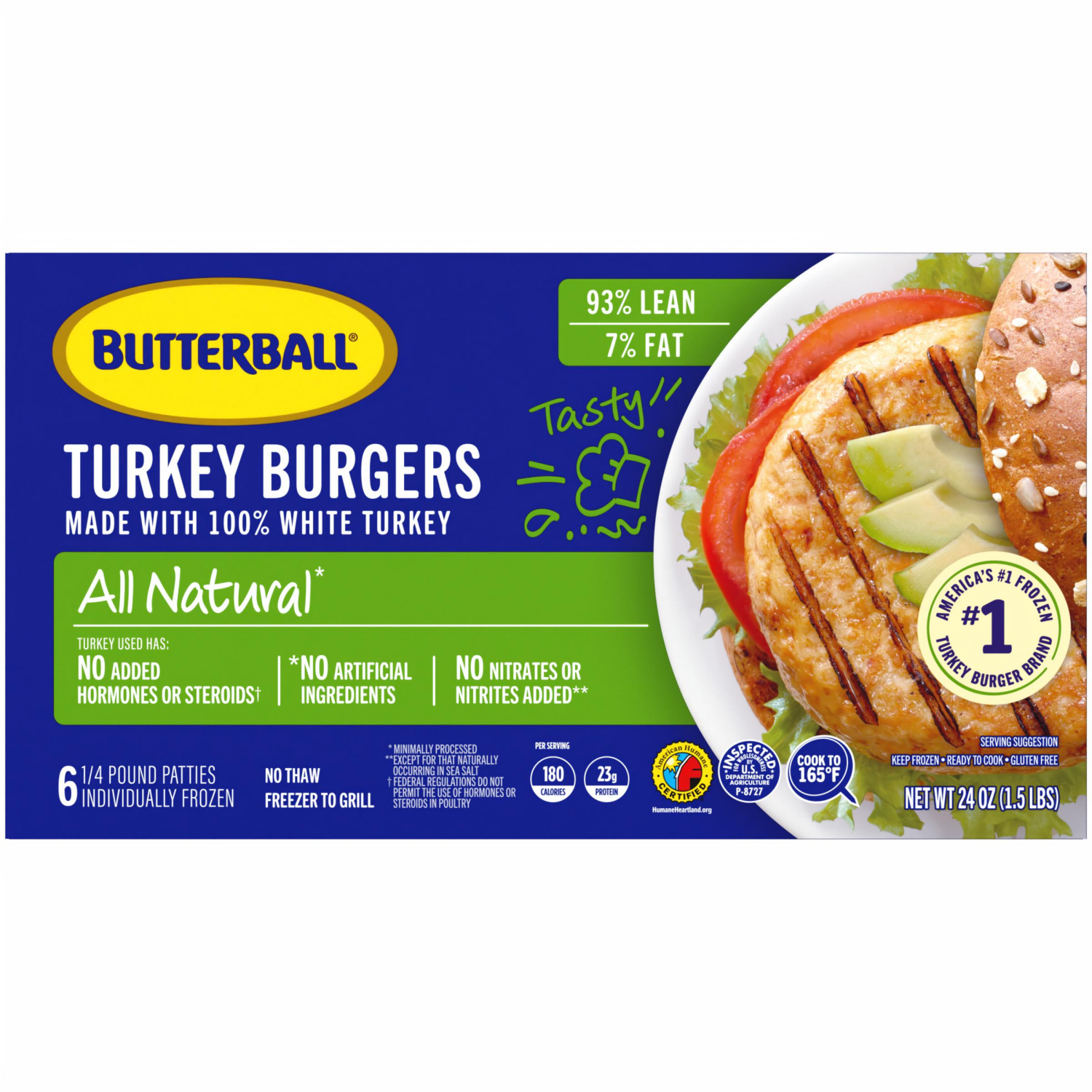 All natural (No artificial ingredients) (Minimally processed). 98% lean/7% fat. Freezer to grill. Turkey has used: No added hormones or steroids (Federal regulations do not permit the use of hormones …