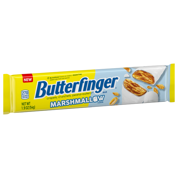 Crisped, crunchy, peanut-buttery. No artificial flavors or colors. 270 calories per bar. Gluten free. New. butterfinger.com. Scan for more food information or call 1-800-310-0412. Get in touch:1-800-3…