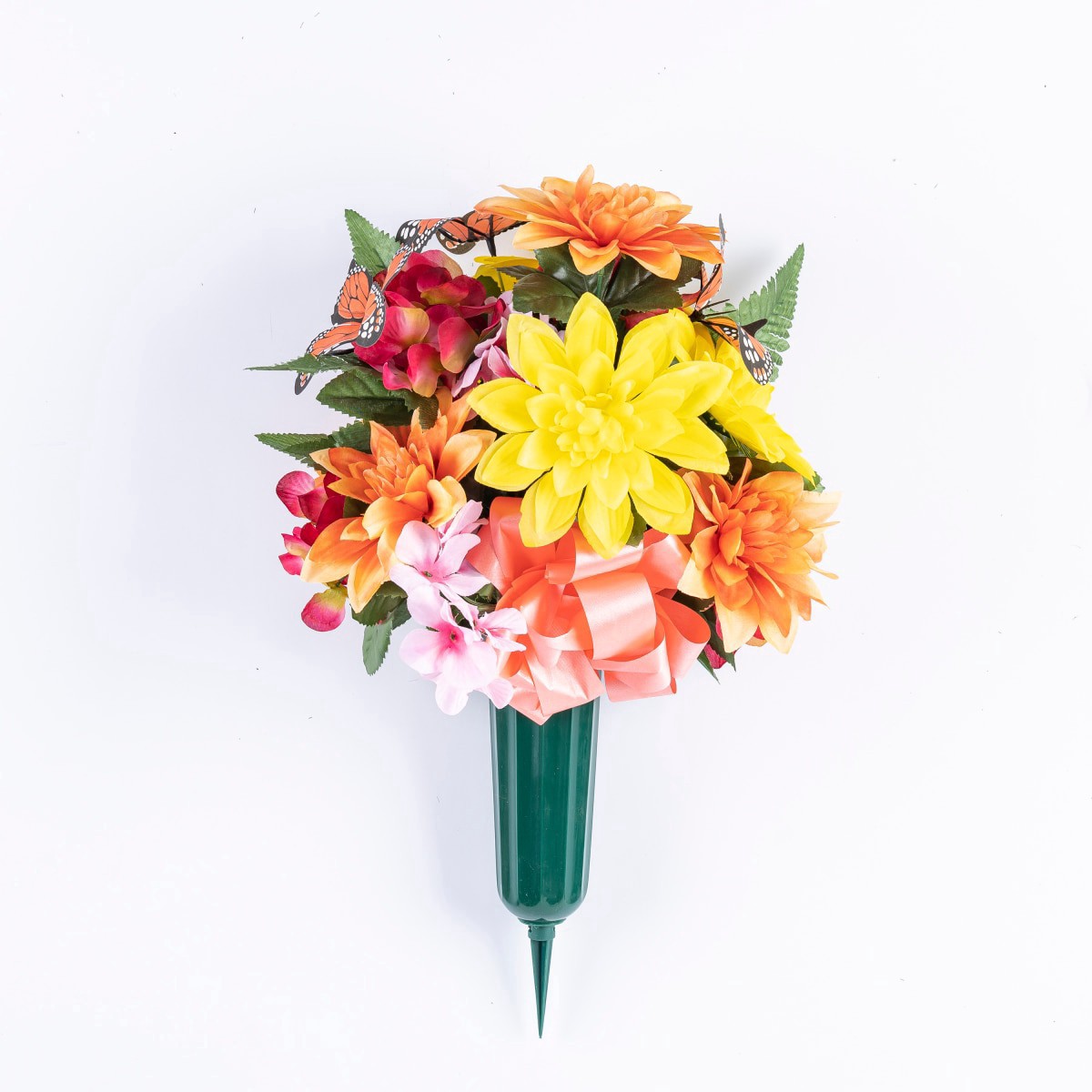 Choose from many colors of these beautiful cemetery vases with assorted floral arrangements and butterflies.