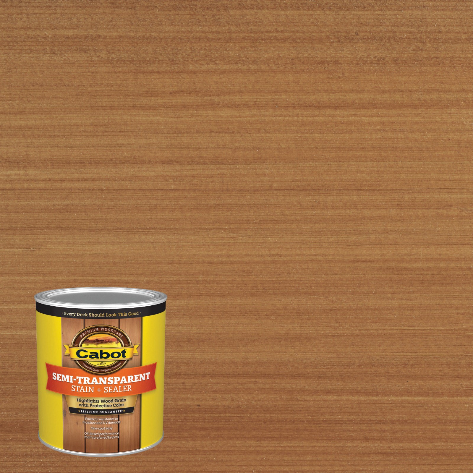 Oil-based stain that is lightly pigmented to accentuate wood grain. Scuff-resistant, fade-resistant color. Water repellent, UV protection. Provides a mildew-resistant finish. One coat application.
