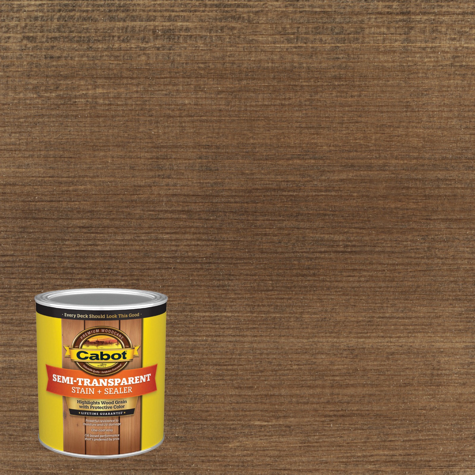 Oil-based stain that is lightly pigmented to accentuate wood grain. Scuff-resistant, fade-resistant color. Water repellent, UV protection. Provides a mildew-resistant finish. One coat application.