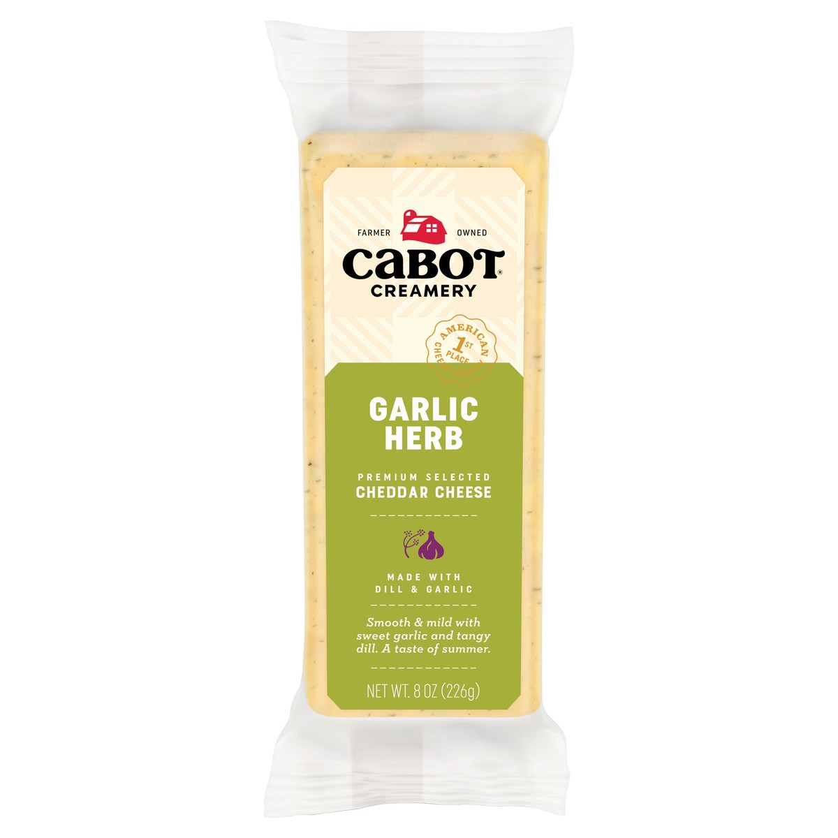 Enjoy the sweet taste of summer with every bite of our farmers Garlic Herb Cheddar Cheese, a smooth and creamy fan favorite that blends mild cheddar and tangy dill.