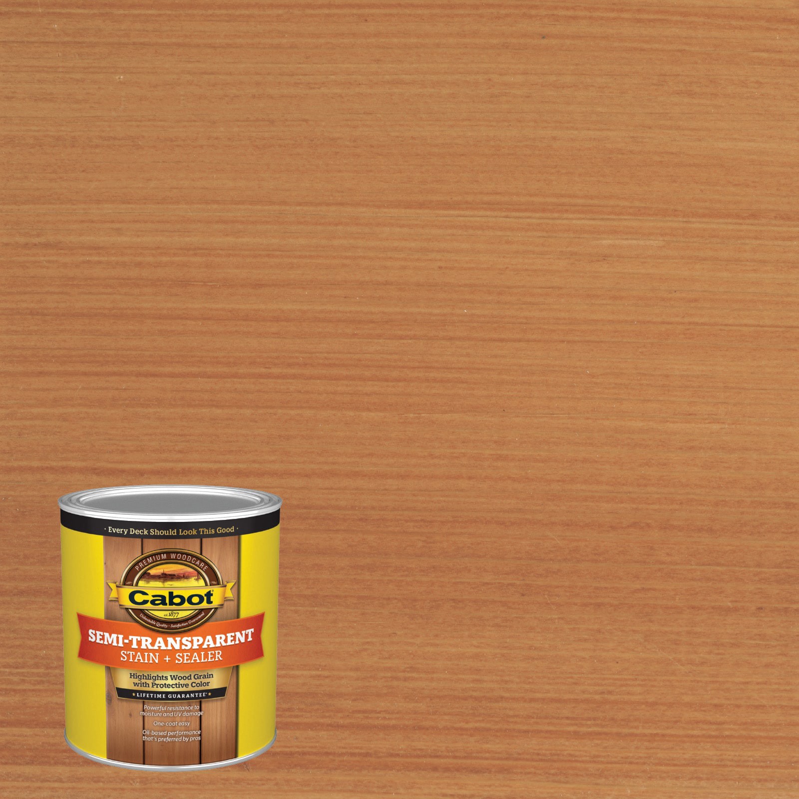Oil-based stain that is lightly pigmented to accentuate wood grain. Scuff-resistant, fade-resistant color. Water repellent, UV protection. Provides a mildew-resistant finish. One coat application.