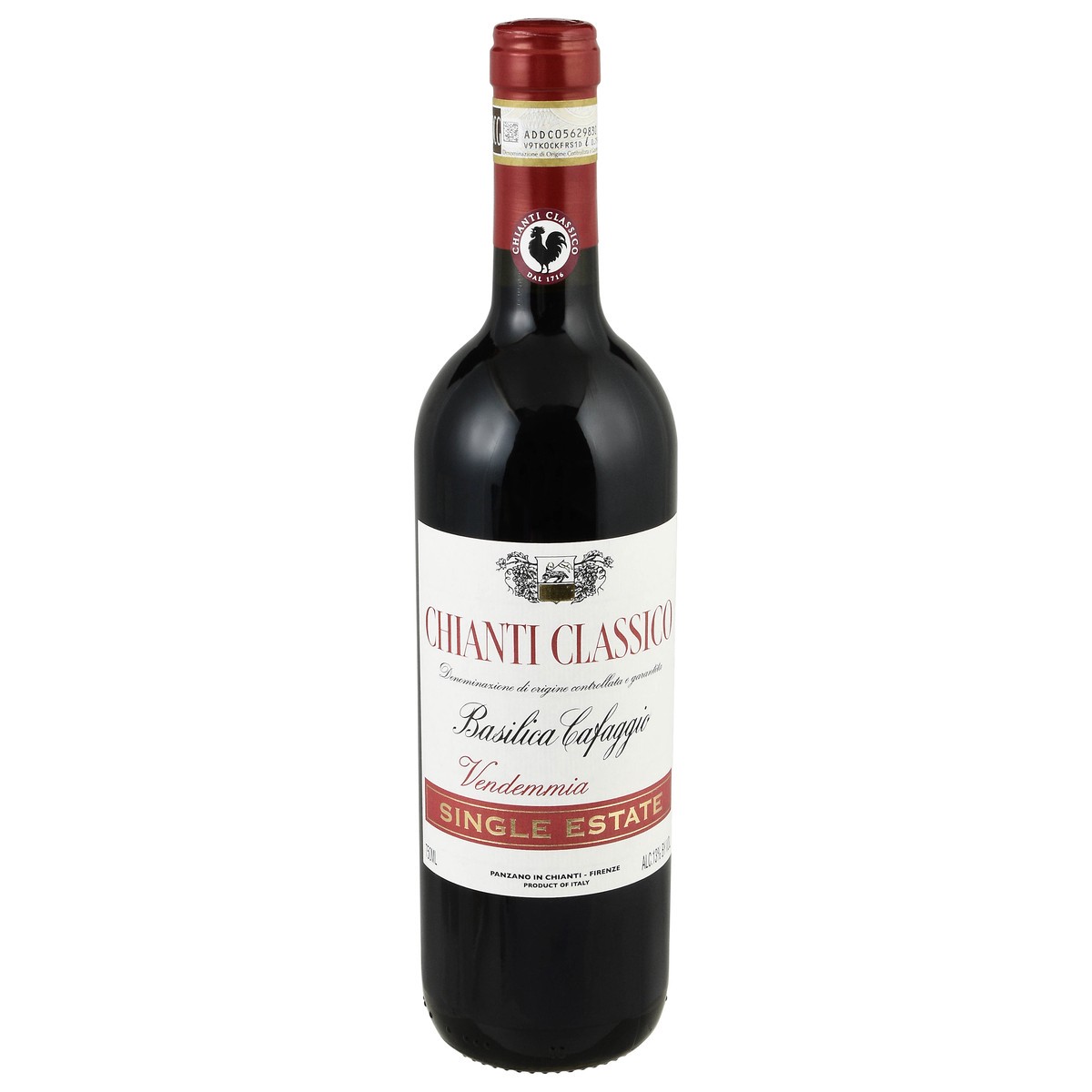 Red wine. Basilica Cafaggio. Single estate. 100% sangiovese. A deliciously concentrated example of Chianti Classico, this has a dark ruby colour and rich notes of black cherry,fruitcake and plum of th…