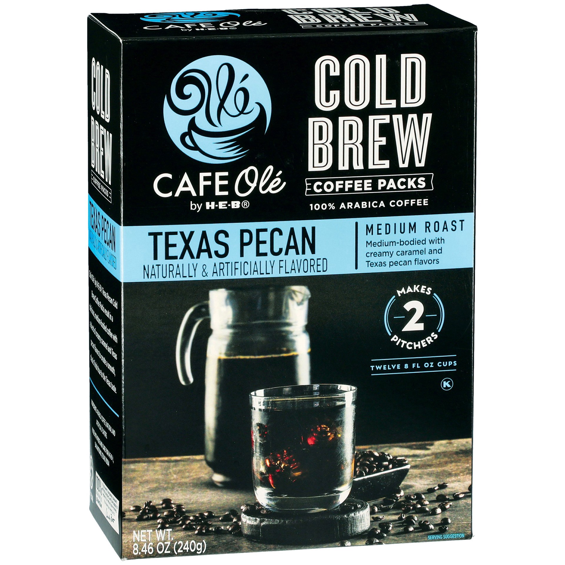 H E B Cafe Ole Texas Pecan Coffee is a medium bodied blend of creamy caramel and Texas pecan flavors to create a smooth, classic finish true to the Texas taste. Makes 2 pitchers