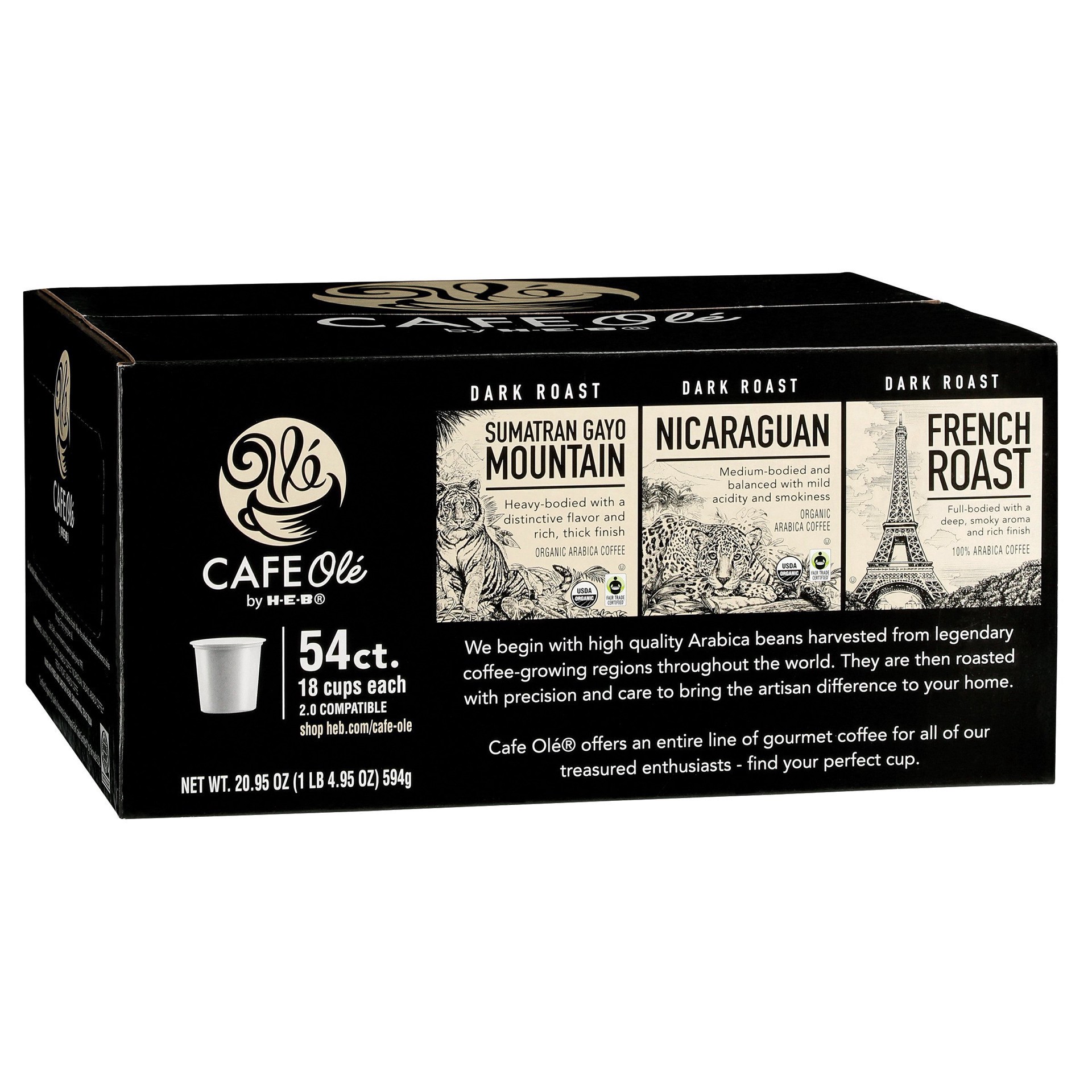 Cafe Ole by H-E-B CAFE Olé by H-E-B Sumatran Gayo Mountain, Nicaraguan & French Roast Coffee Single Serve Cups Variety Pack