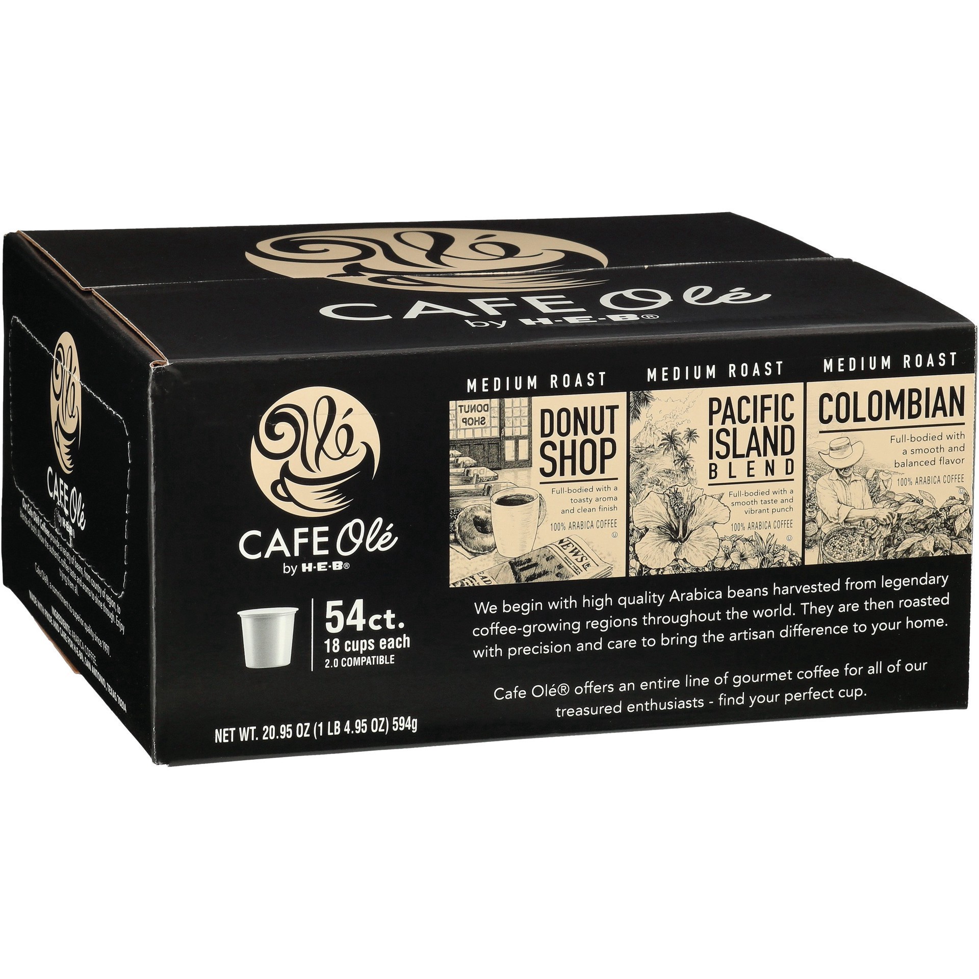 Cant decide which Caf Ol flavor to try HEB Caf Ole Variety pack has you covered with distinct Donut Shop, Kona, and Colombian blends This 54count pack includes 18 singleserve cups of each type, and is…