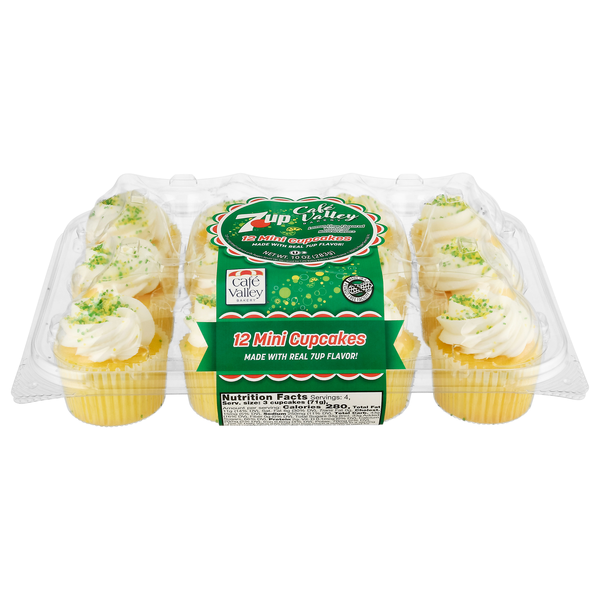 slide 1 of 1, Cafe Valley Bakery 7 Up Lemon Lime Flavored Cupcakes Mini 12 ea, 12 ct