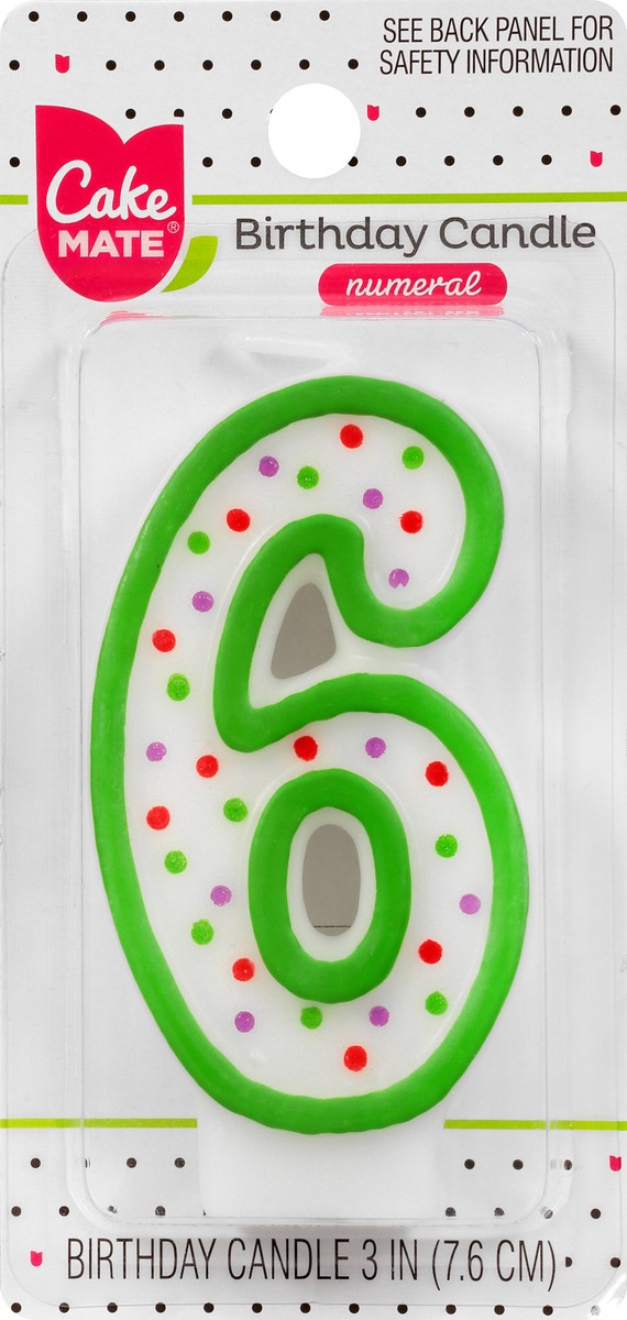 Cake Mate 3 Inch 6 Numeral Birthday Candle 1 ea