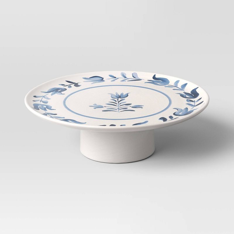 Elevate your dessert presentation with this Floral Cake Stand from Threshold™. Made of stoneware, this cake stand features floral prints in a blue hue to bring a touch of warmth and charm to your tabl…
