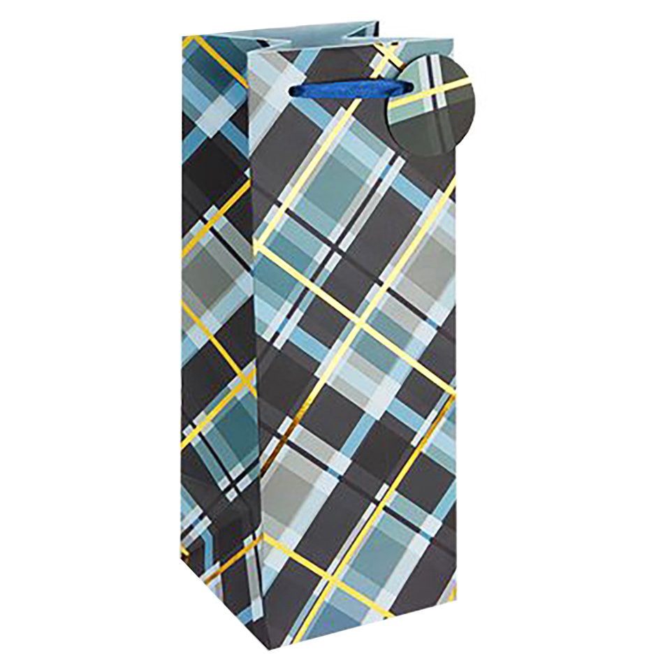 Cakewalk Bold Plaid Wine Bottle Gift Bag