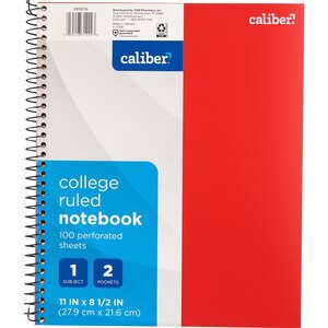 Caliber 1 Subject Notebook College Ruled, 11In X 8.5In, Assorted