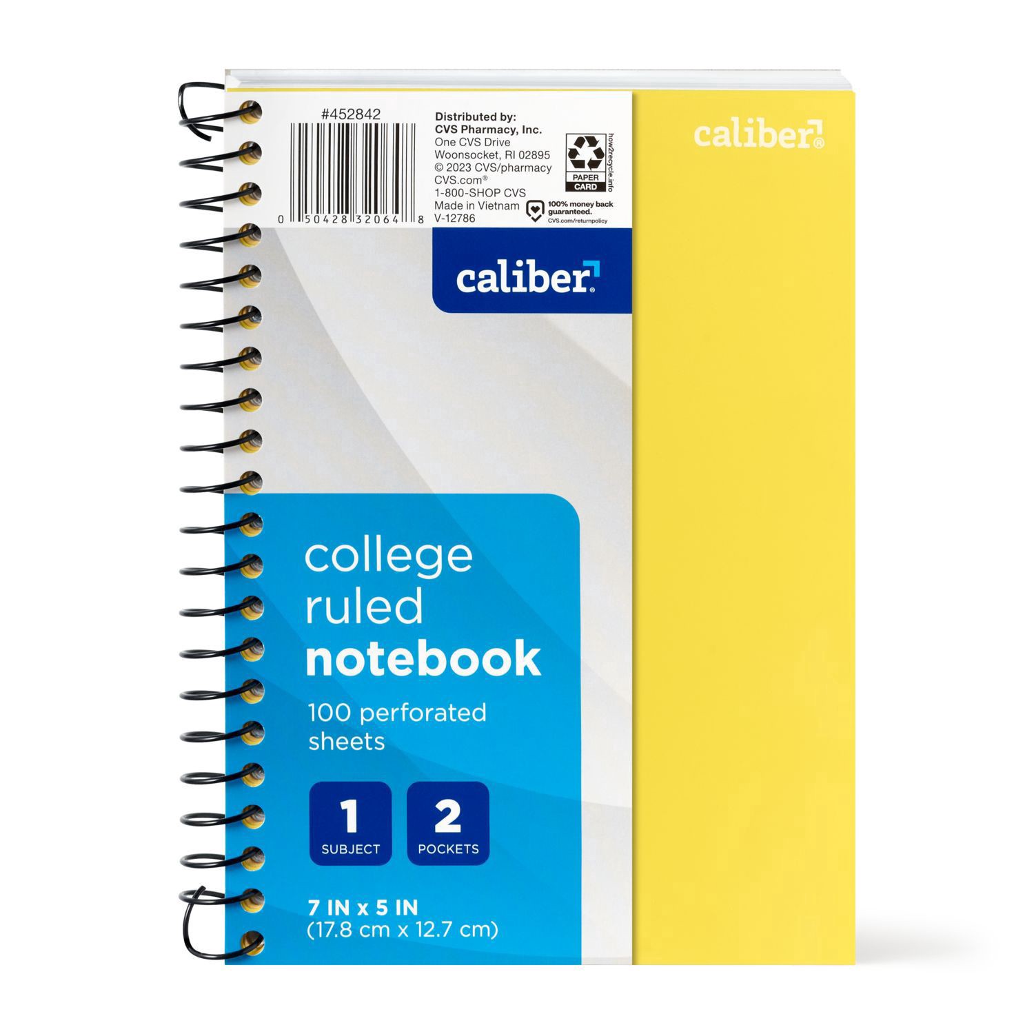 Caliber 1 Subject Notebook College Ruled, 7" X 5"
