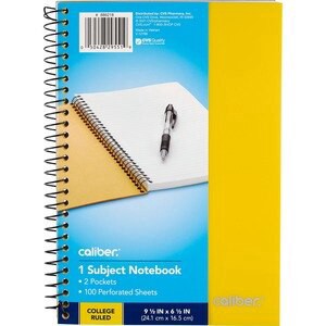 Caliber 1 Subject Notebook College Ruled, 9.5In X 6.5In, Assorted