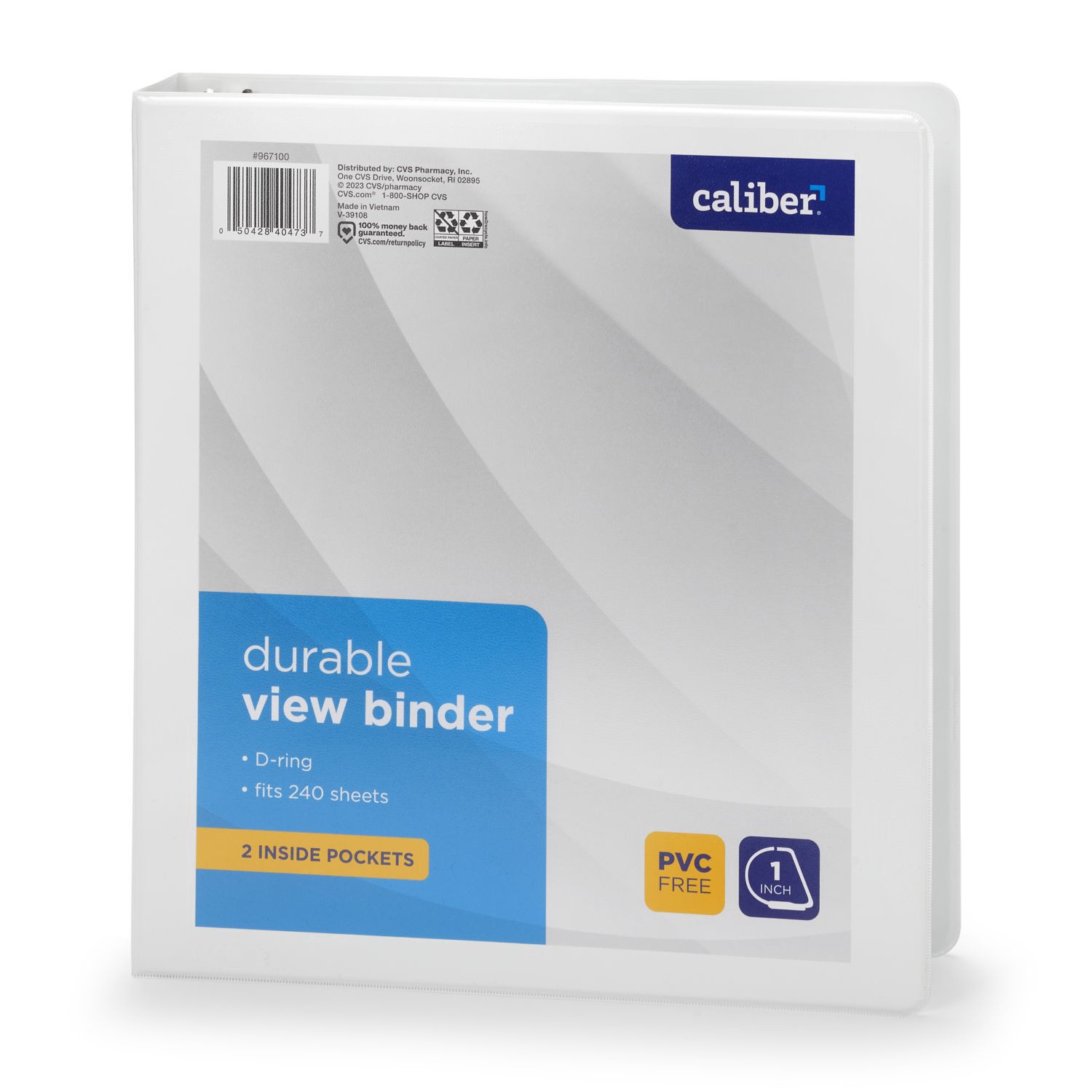 Caliber Durable View 1.5 Inch Binder is free from PVC. The binder fits up to 375 sheets. This white binder also comes with inside pockets to store items. Durable, it is sure to last long. You surely c…