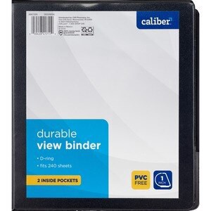 slide 1 of 1, Caliber Durable View Binder - Black, 1 in