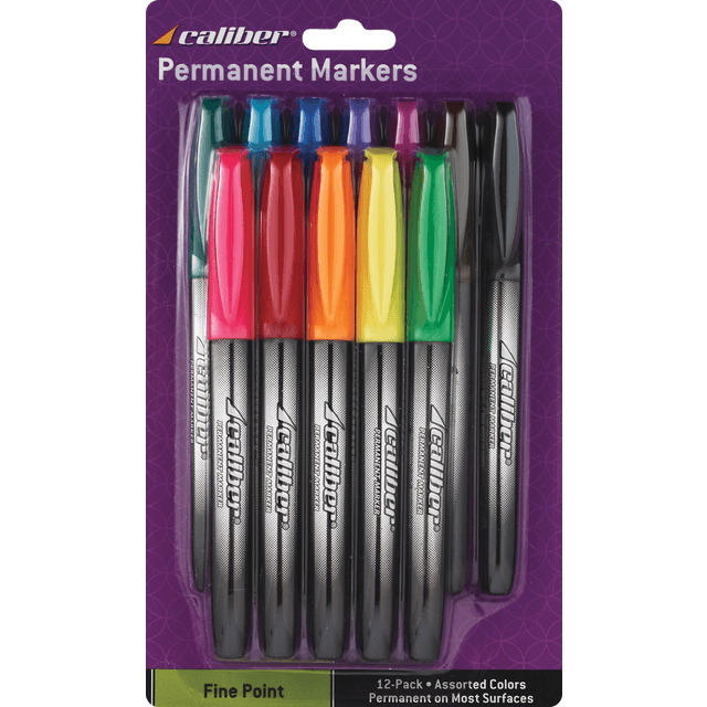 slide 1 of 1, Caliber Perrmanent Markers Fine Point Assorted Colors, 12 ct