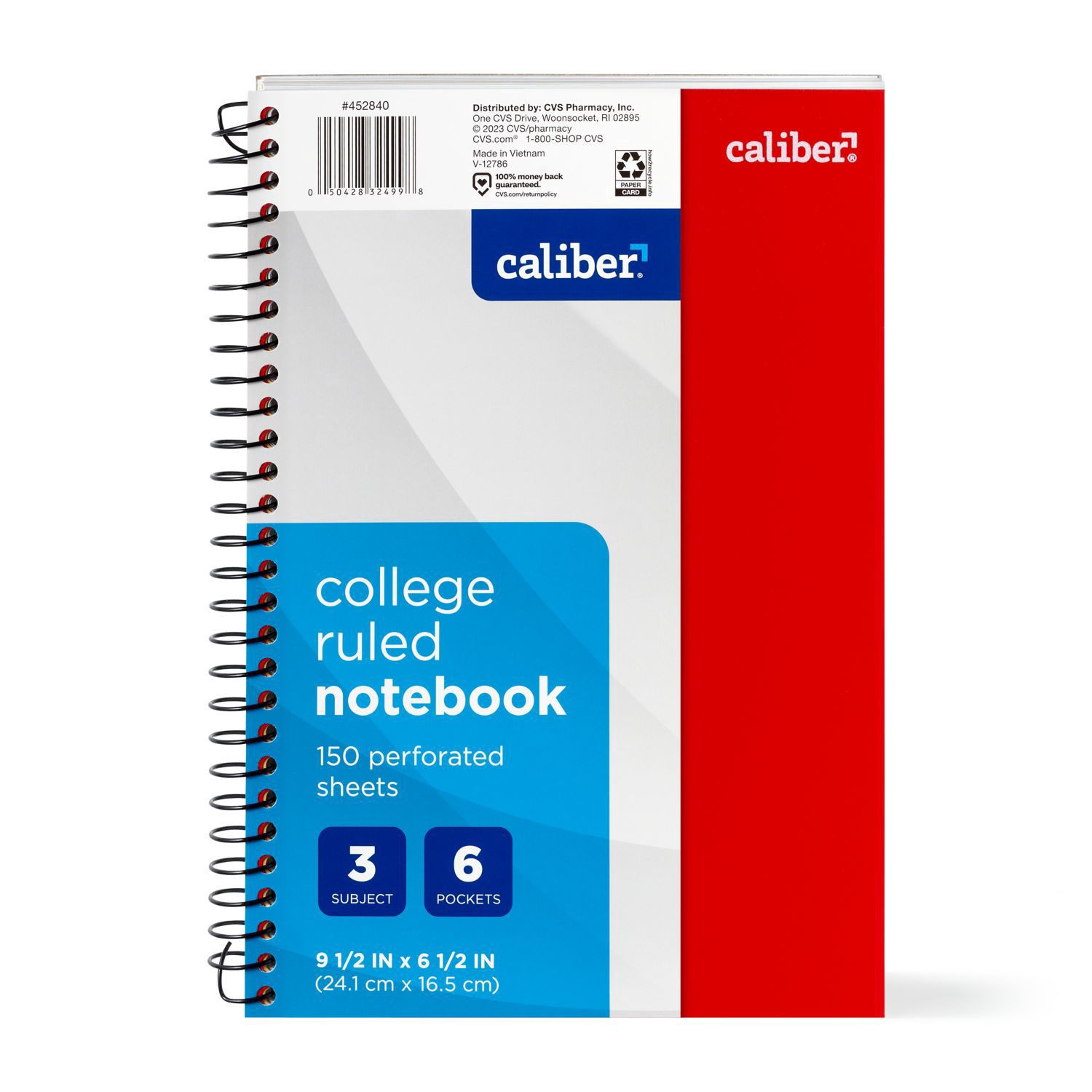 Caliber Premium 3 Subject Notebook, College Ruled, 150 Sheets, Assorted