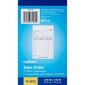 50 Sets. 2 Part. Carbonless. 4 3/16 x 7 3/16 Inch. Made in Mexico.