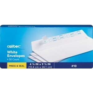 slide 1 of 1, Caliber White Envelopes, 50 ct; 4 1/8 in x 9 1/2 in