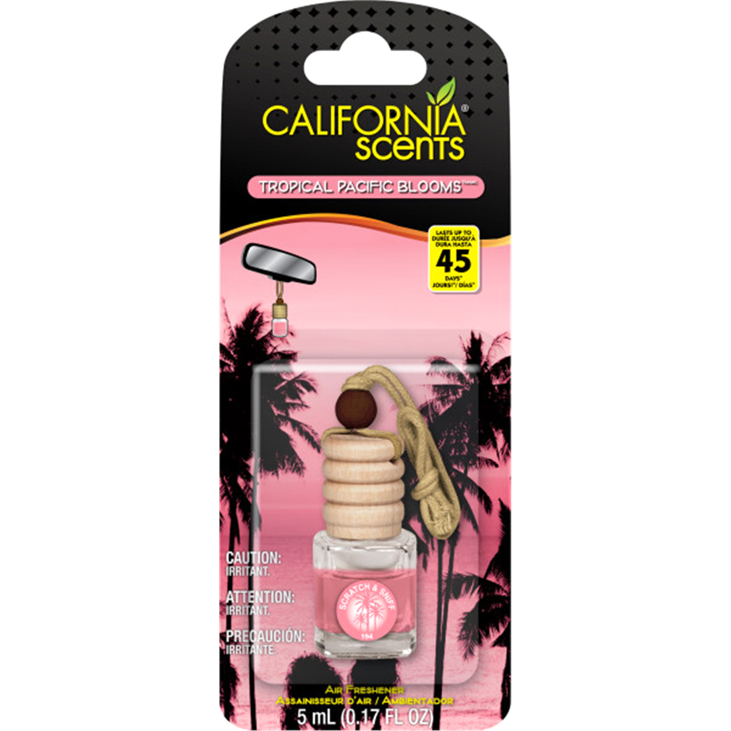 California Scents Tropical Pacific Blooms Scent Hanging Vial Car Air Freshener delivers a refreshing flowery scent throughout your vehicle. The bold scent brings to life the smell of hibiscus, raspberā¦
