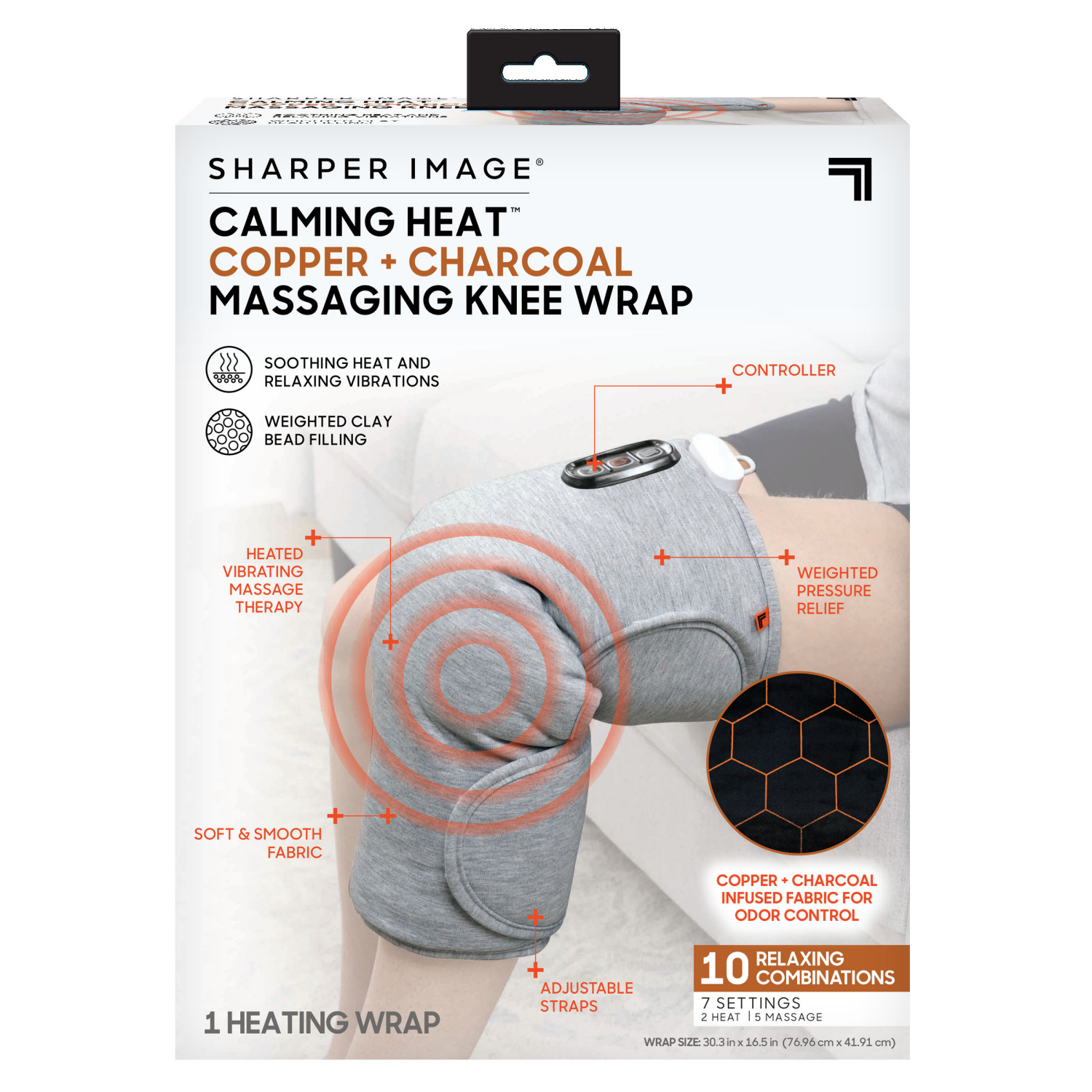 Calming Heat Knee Wrap by Sharper Image Personal Electric Knee Heating Pad Wrap with Vibrations, 2 Heat & 5 Massage Settings for 10 Relaxing Combinations, Soft to Touch Plush Fabric Grey