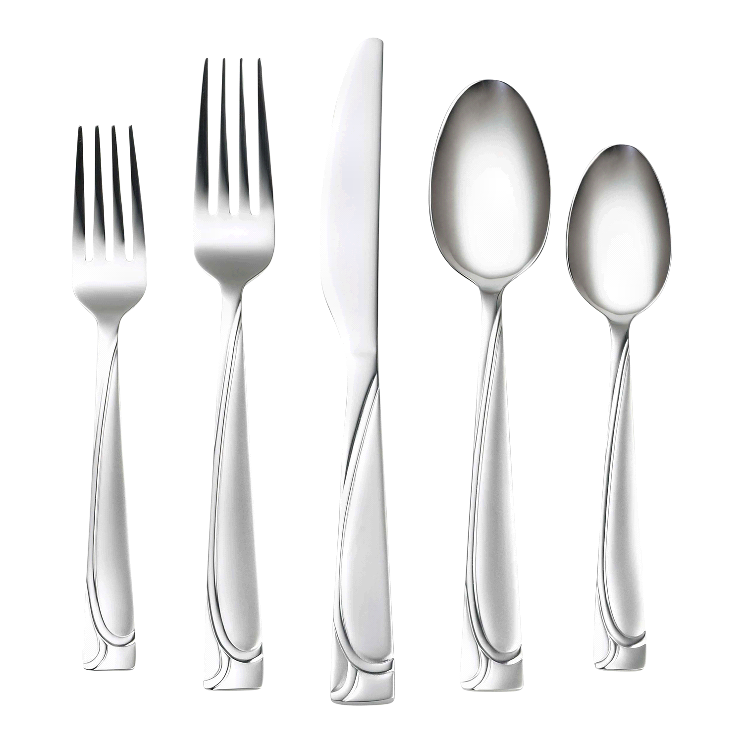 The Mena Sand flatware pattern features a shimmery frost finish with bright, polished accents on each hande. The graceful, botanicalinspired design makes it an elegant complement for any placesetting.