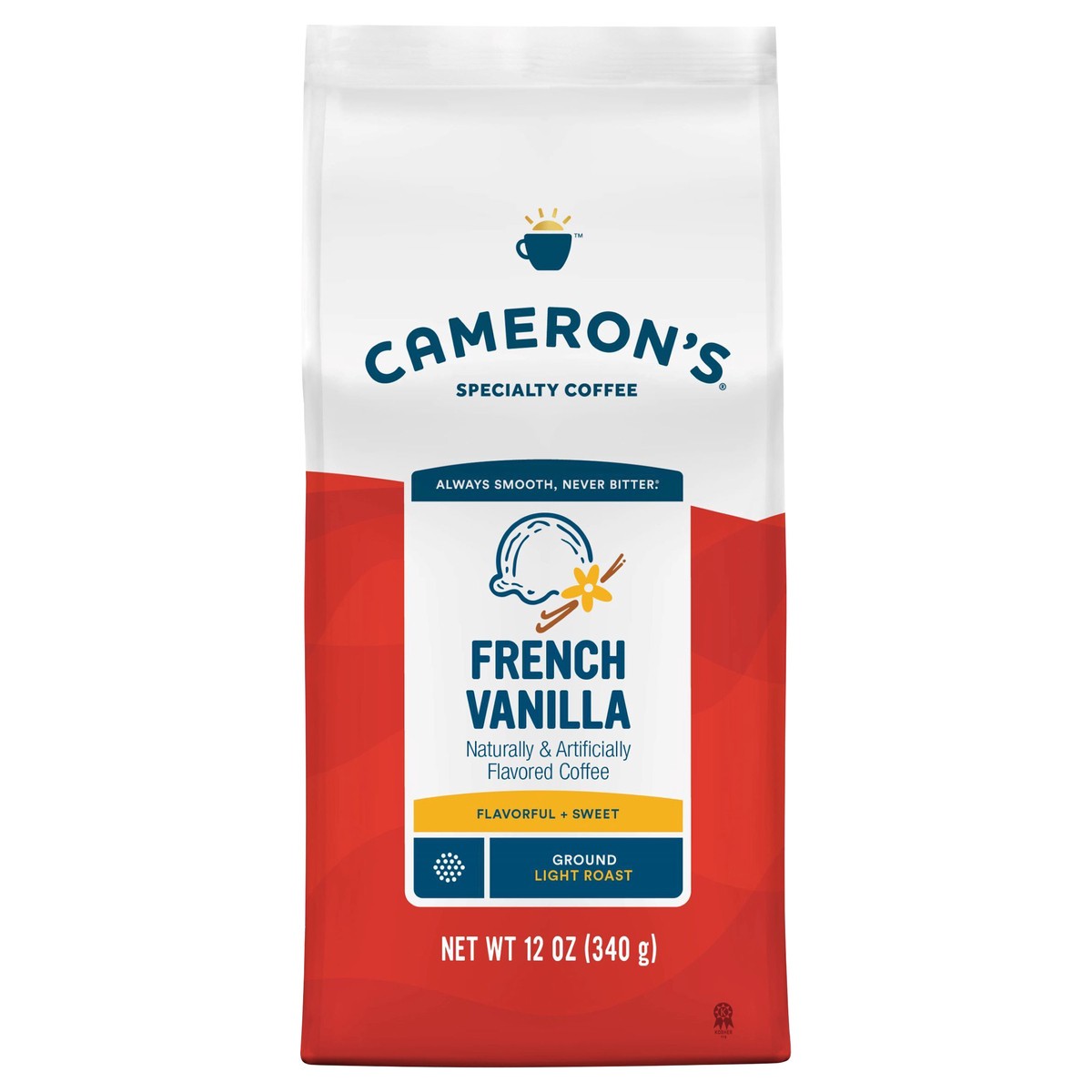 Cameron's Coffee Roasted Ground Coffee Bag, Flavored, French Vanilla, 12oz. Exceptional beans mixed with notes of French vanilla cream make this cup smooth, sweet and unforgettable. Cameron's uses 100…