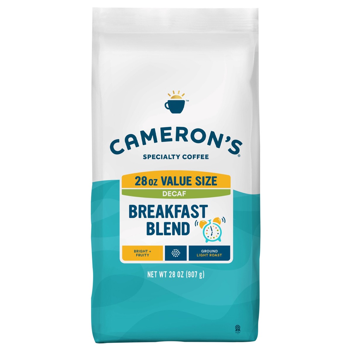 Cameron's Coffee Roasted Ground Coffee Bag, Decaf Breakfast Blend, 10oz. Rise and shine with this delicious decaf! This coffee offers a light body with hints of citrus and clean crisp finish.Cameron's…