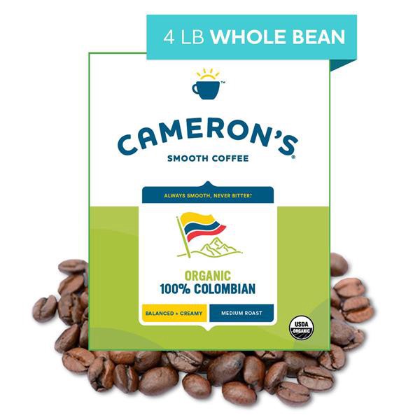 Cameron's Coffee Roasted Whole Bean Bag, Organic 100% Colombian, 4 Pound. Good days start with 100% Colombian beans roasted to perfection. With balanced flavor and a creamy finish, this single origin …