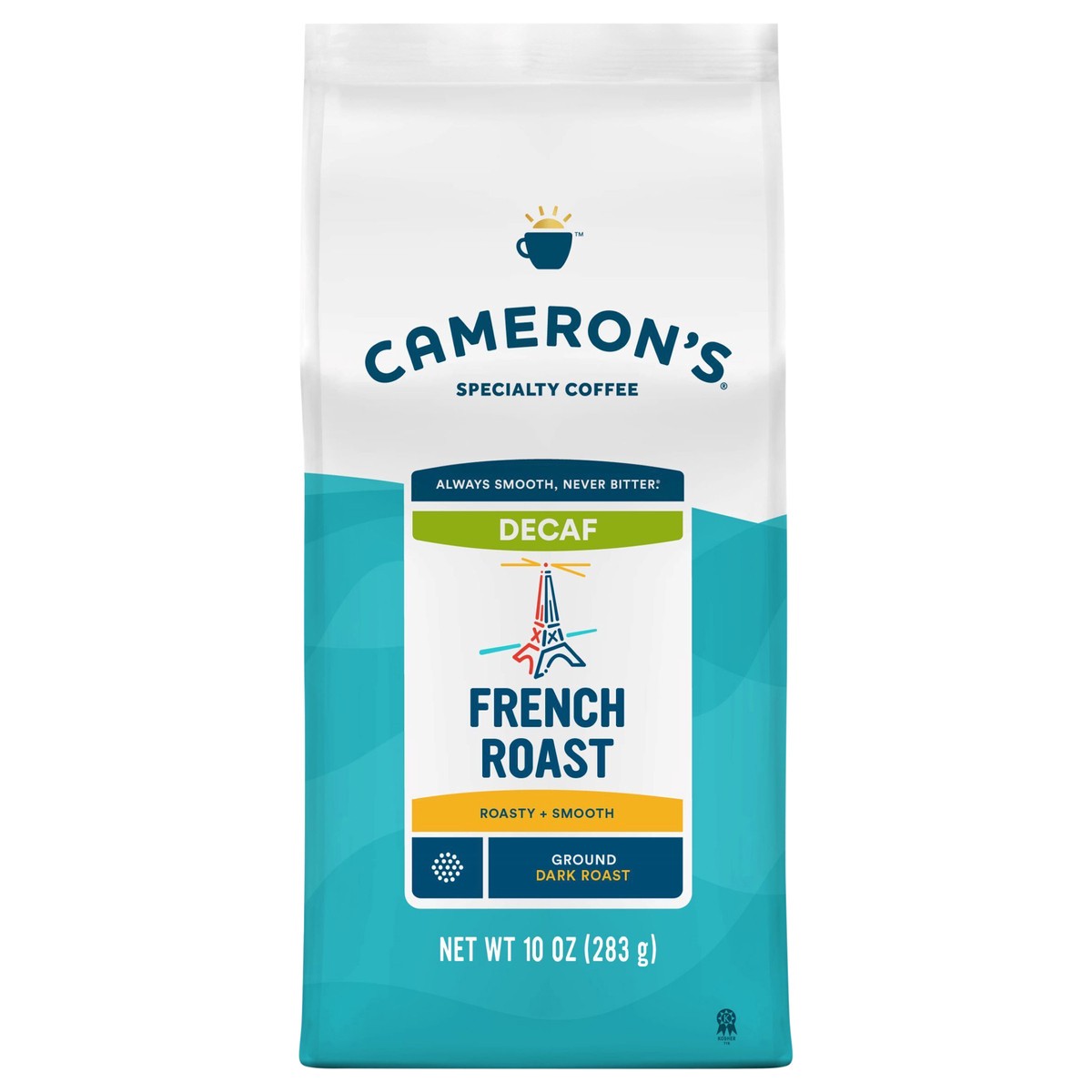 Cameron's Coffee Roasted Ground Coffee Bag, Decaf French Roast, 10oz. This Central and South American decaffeinated coffee is full of flavor. Its sweet, well-rounded body and dark finish make it excep…