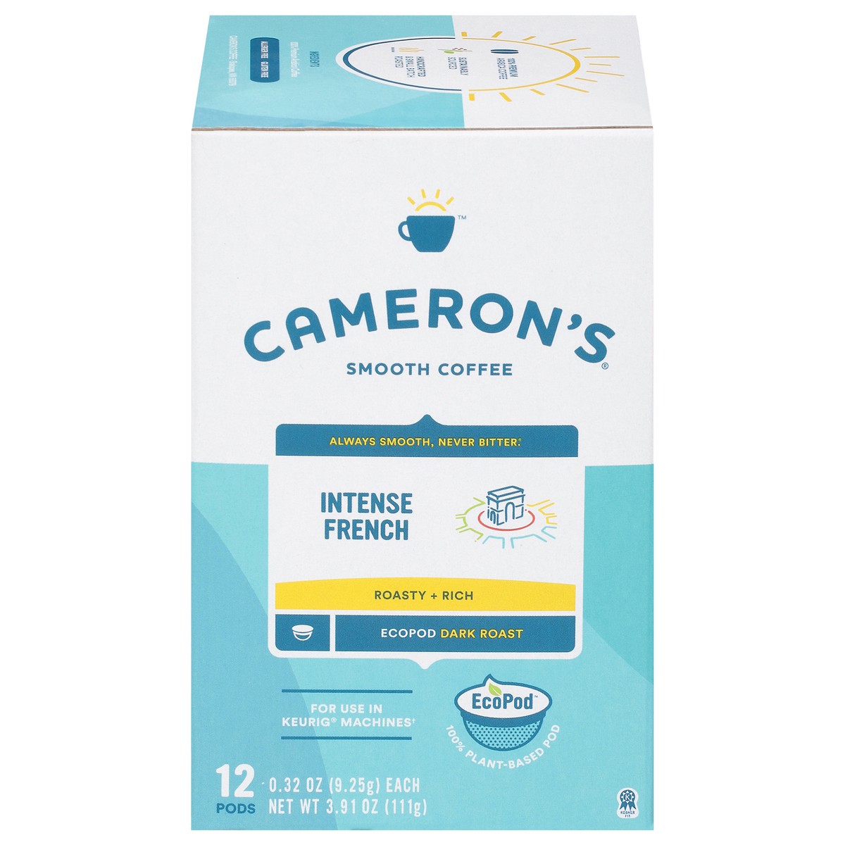 Cameron's Coffee Single Serve Pods, Intense French, 12 Count. The finest Sumatran, Central and South American beans roasted to a black, shiny finish. Cameron's uses 100% premium Arabica beans, hand-cr…
