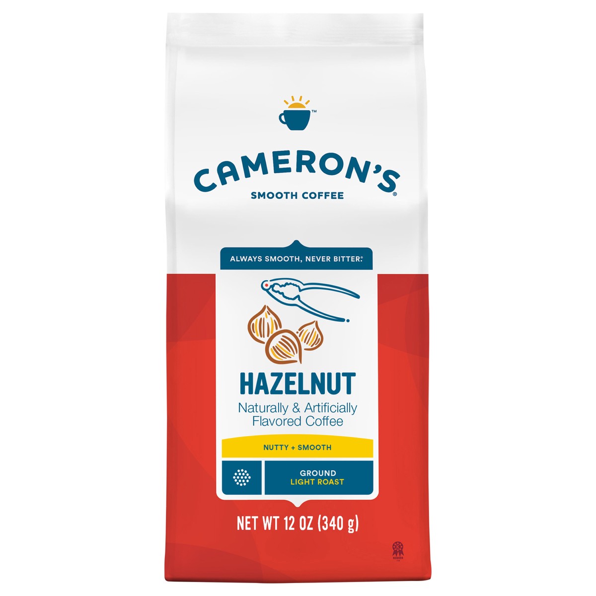 Cameron's Coffee Roasted Ground Coffee Bag, Flavored, Hazelnut, 12oz. Savor the buttery taste of hazelnuts with this lightly-roasted, sweet and smooth blend. Cameron's uses 100% premium Arabica beans,…