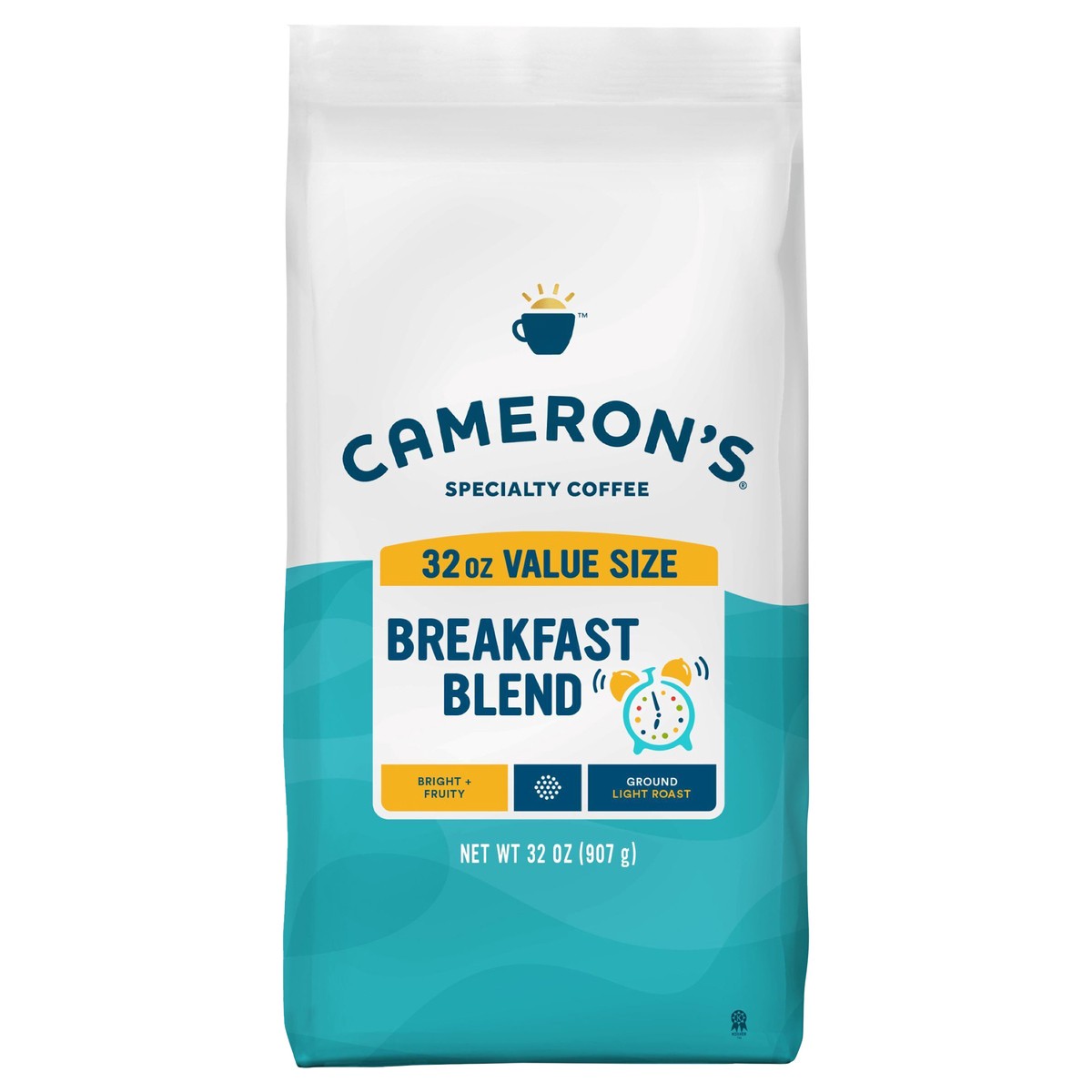 Cameron's Coffee Ground Bag, Breakfast Blend, 32oz. Say good morning to this perfect blend of Central and South American coffees that are slow roasted to a mild, yet rich flavor. Cameron's uses 100% p…