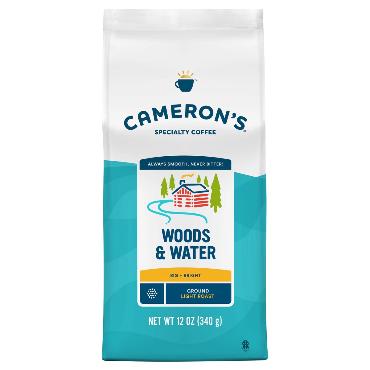 Cameron's Coffee Roasted Ground Coffee Bag, Woods & Water, 12oz. This bright, big-bodied blend of Central American beans is a unique light roast with complex characteristics.Cameron's uses 100% premiu…